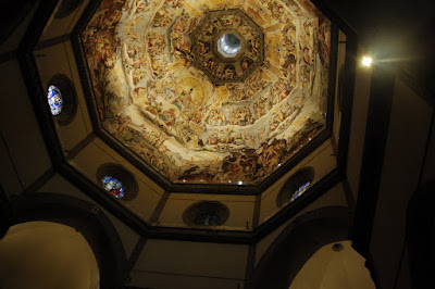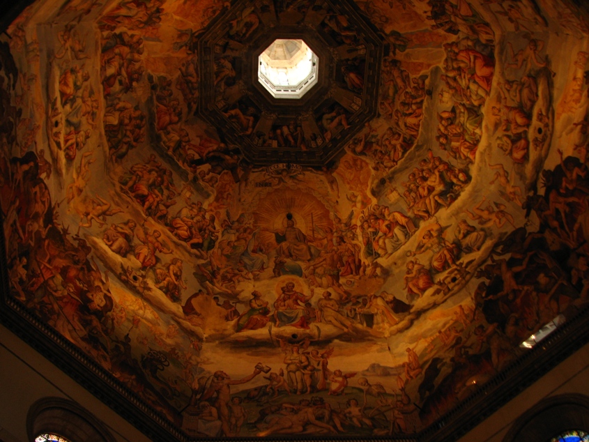 A dóm freskós kupolája Brunelleschi műve. 8 szögletű, átmérője több, mint 40 méter. Szerkezete még gótikus, de már önhordó. |